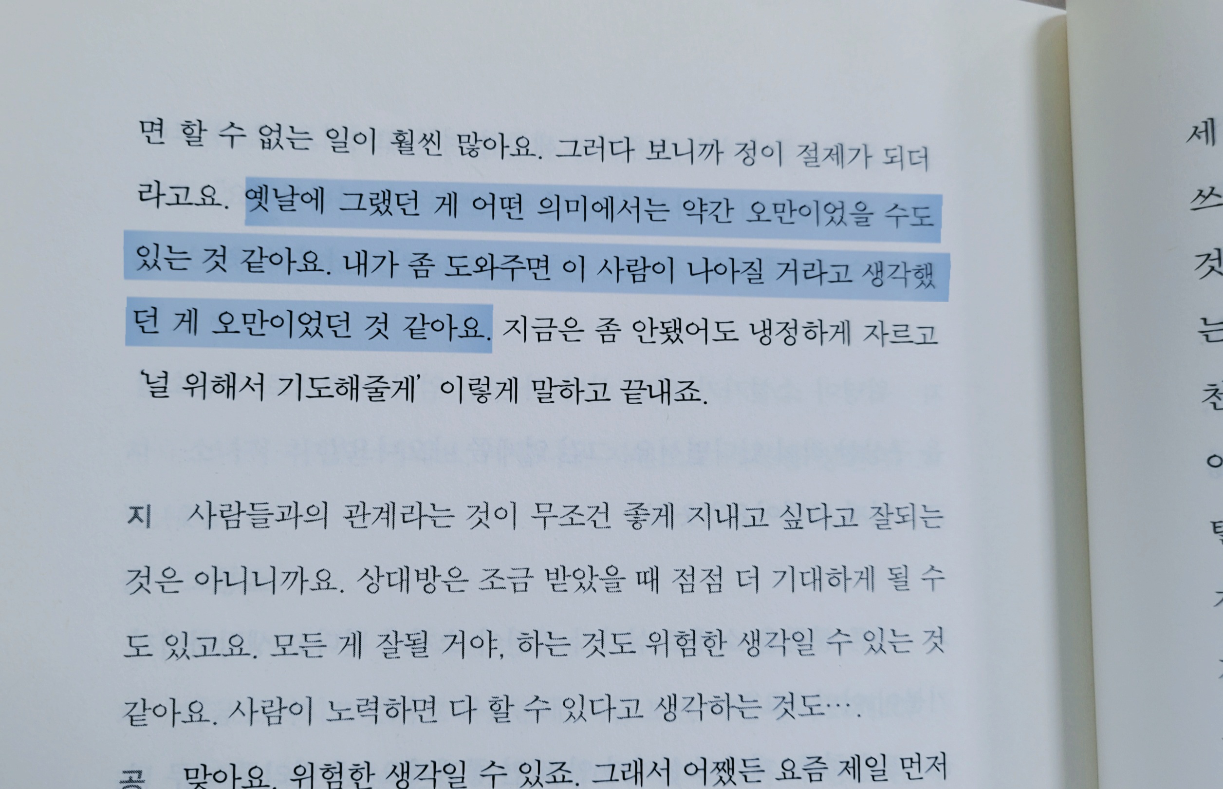 ๊ณต์ง์๋๊ณผ ์ง์นํธ๋์ <๊ด์ฐฎ๋ค, ๋ค ๊ด์ฐฎ๋ค>๋ฅผ ์ฝ๋ค๊ฐ ๋ฌด๋ฆ์ ํ ์น๊ฒ ํ๋ ๊ตฌ์ ์ด ์์ด ๋ฉฐ์น ์ ์ ์ด์ด ๋ ๊ฐ์ ธ์๋ค. '๋ด๊ฐ ๋์์ฃผ๋ฉด ๋๊ตฐ๊ฐ๊ฐ ๋ ๋์์ง ๊ฑฐ๋ผ๊ณ ' ํจ๋ถ๋ก ์๊ฐํ๋ ๊ฒ ์ค๋ง์ด๋ผ๋ ๊ฒ. ๋ณธ์ธ์ด ๋ณด๊ธฐ์๋ ์ง์ง ๋์์ฃผ๋ ๊ฑด๋ฐ ์๋๋ฐฉ์ด ๋ณด๊ธฐ์๋ ์ ํ ๋์์ฃผ๋ ๊ฒ ์๋ ๊ฑฐ๋ผ๋ ์ฑ์ํ ์๊ฐ.