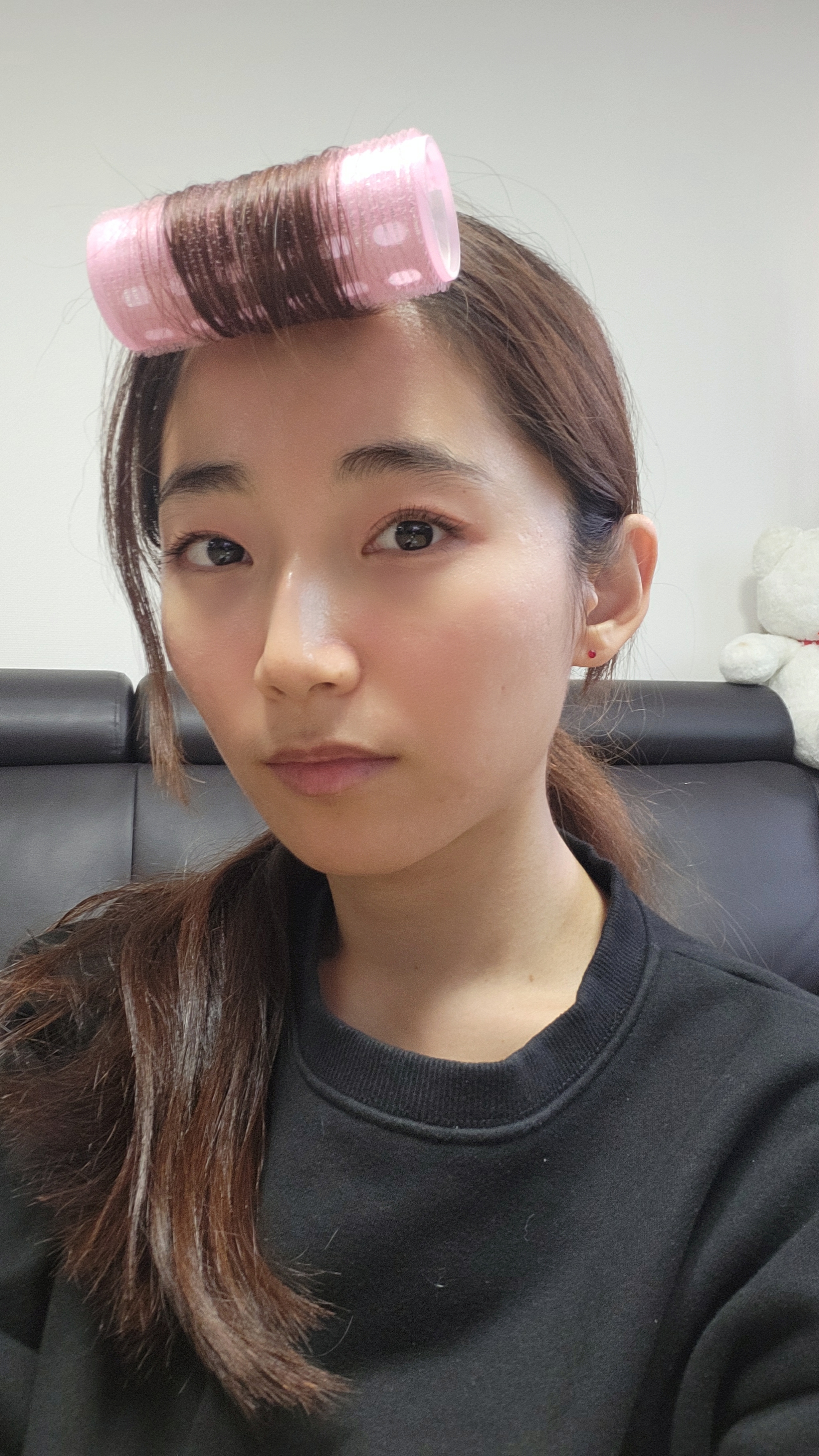 When I got home, I rolled my bangs and I also cut my bangs a bit and went to eat meat!