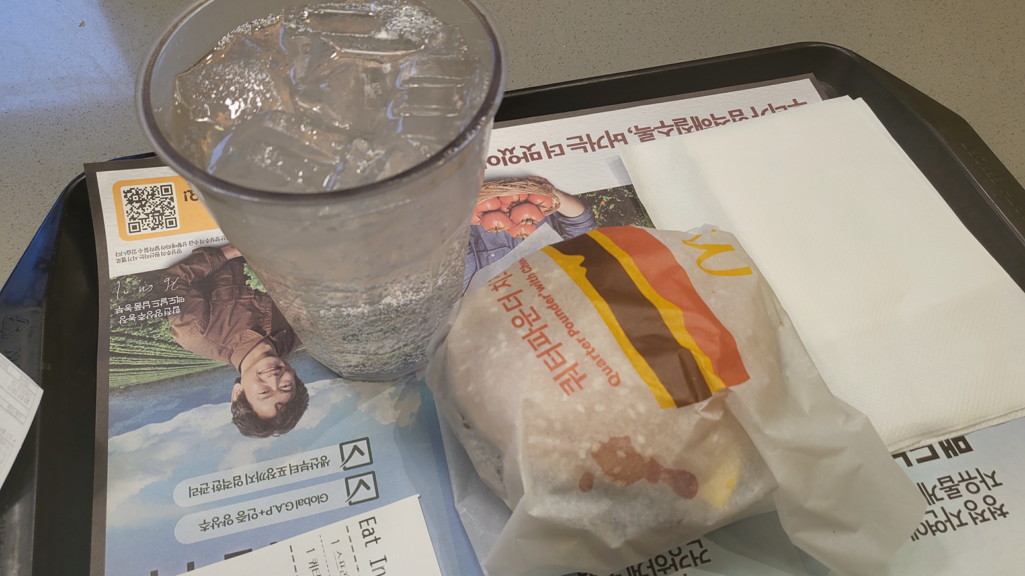 I got hungry after I'd bought the padded jacket, So I ate the hamburger at McDonald's lol