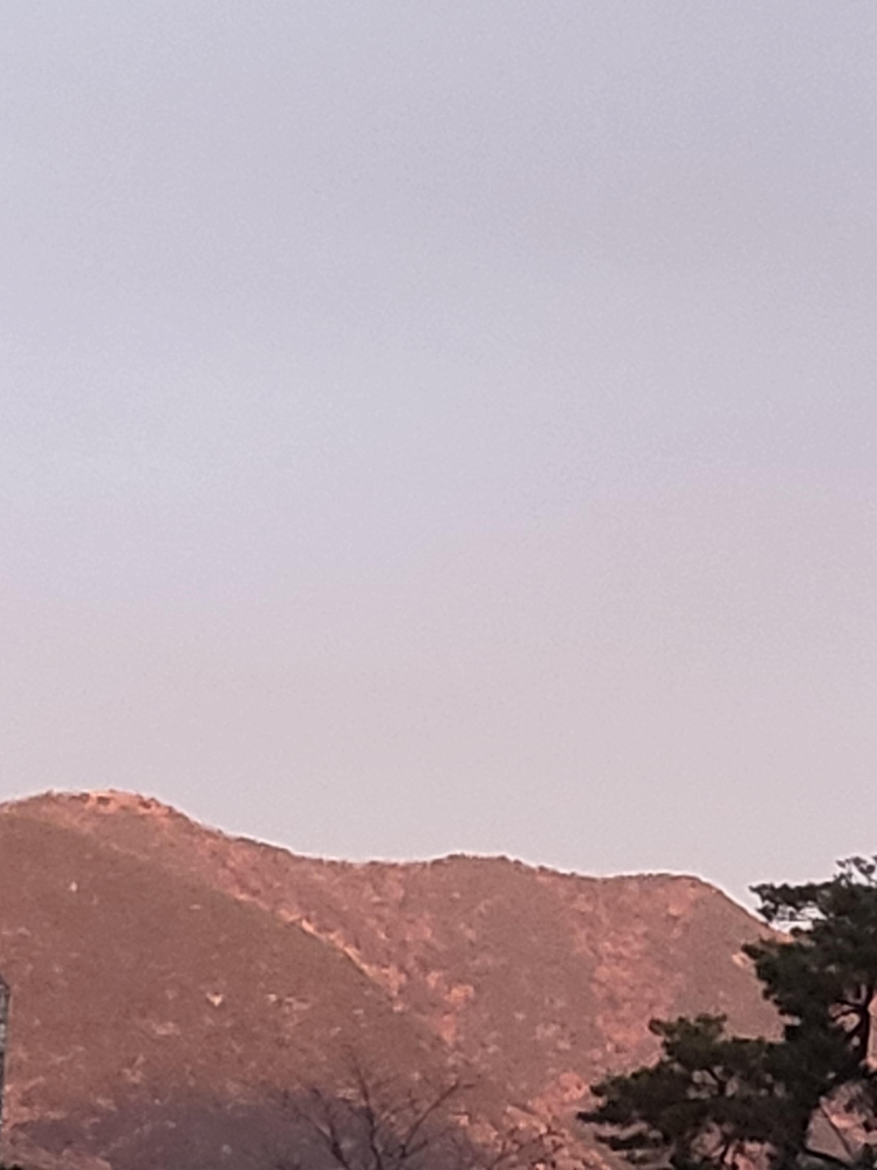 On my way home, the mountain was red under the sunset, so I took the photo of it because it was fascinating. ๐๐