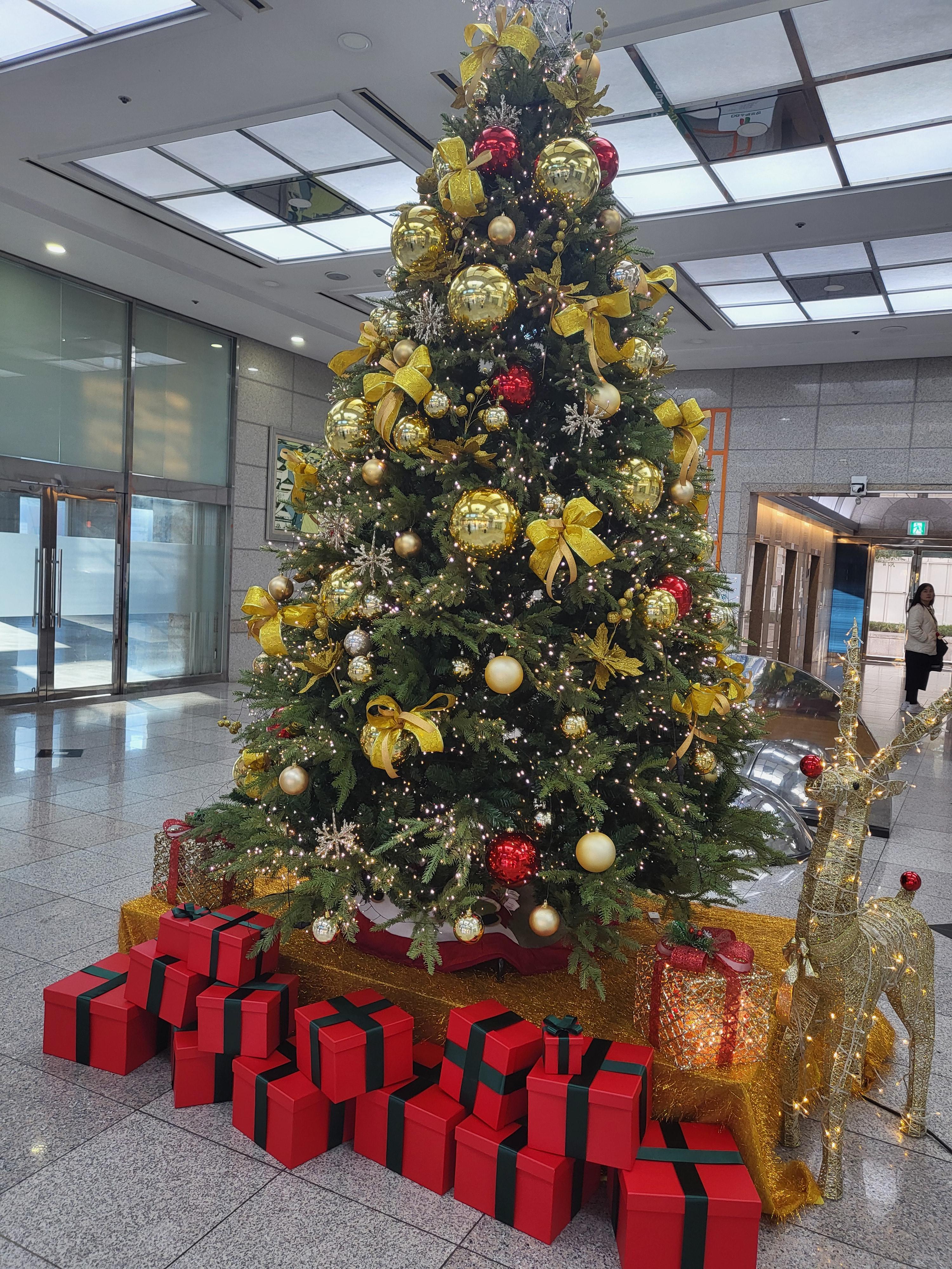 There's a Christmas tree decoration in the lobby of the company ๐